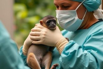 Macaca-Prego Baleada em Rio de Janeiro Aguarda Cirurgia para Sobreviver